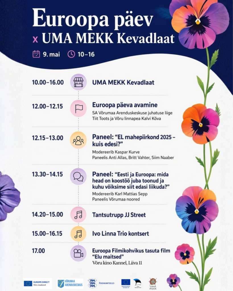 Laupäeval, 9. mail algusega kell 10.00 toimub Võru linna keskväljakul järjekordne Euroopa Päev koostöös UMA MEKK kevadlaadaga. Ootame kõiki Võru maakonna elanikke ja külalisi üritusest osa saama.
