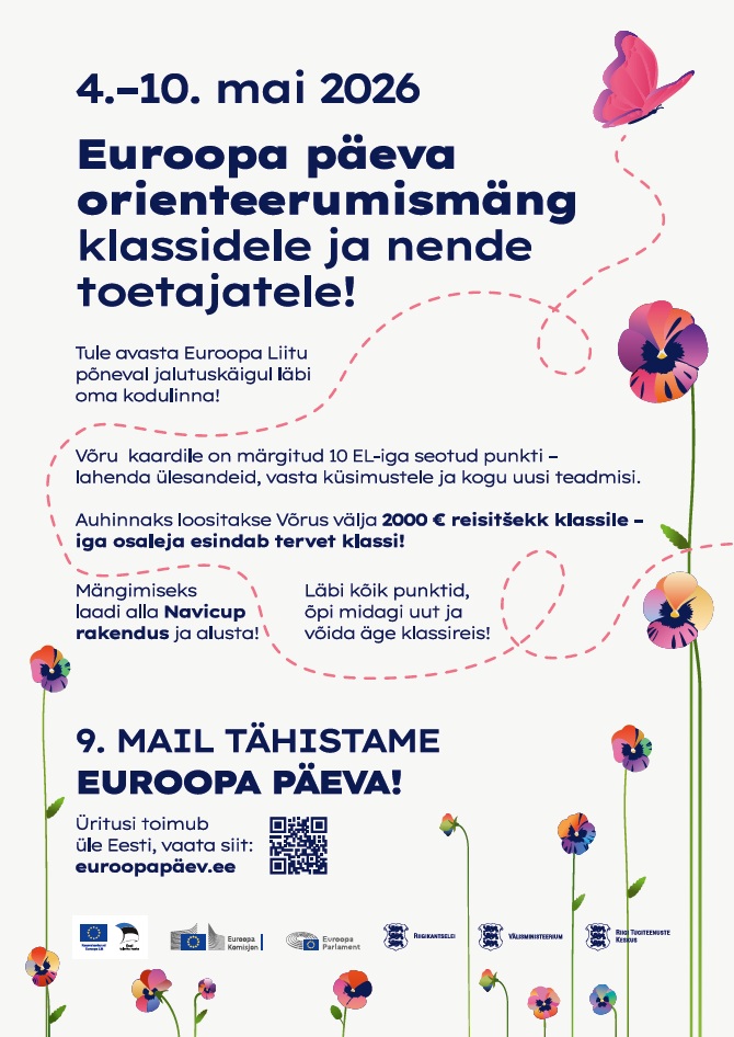 Euroopa päeva orienteerumismäng tuleb taas! Tegu on interaktiivse kaardimänguga, kus igas linnas on jalutusteekonnale märgitud kümme kontrollpunkti. Punktid asuvad Euroopa Liiduga (EL) seotud paikades – näiteks saatkondades, avalikes hoonetes ja erinevate projektide asukohtades. Sel aastal on mängima oodatud kaheksa linna: Tallinn, Narva, Tartu, Kohtla-Järve, Võru, Pärnu, Kuressaare ja Valga. Mängida võib igaüks!
