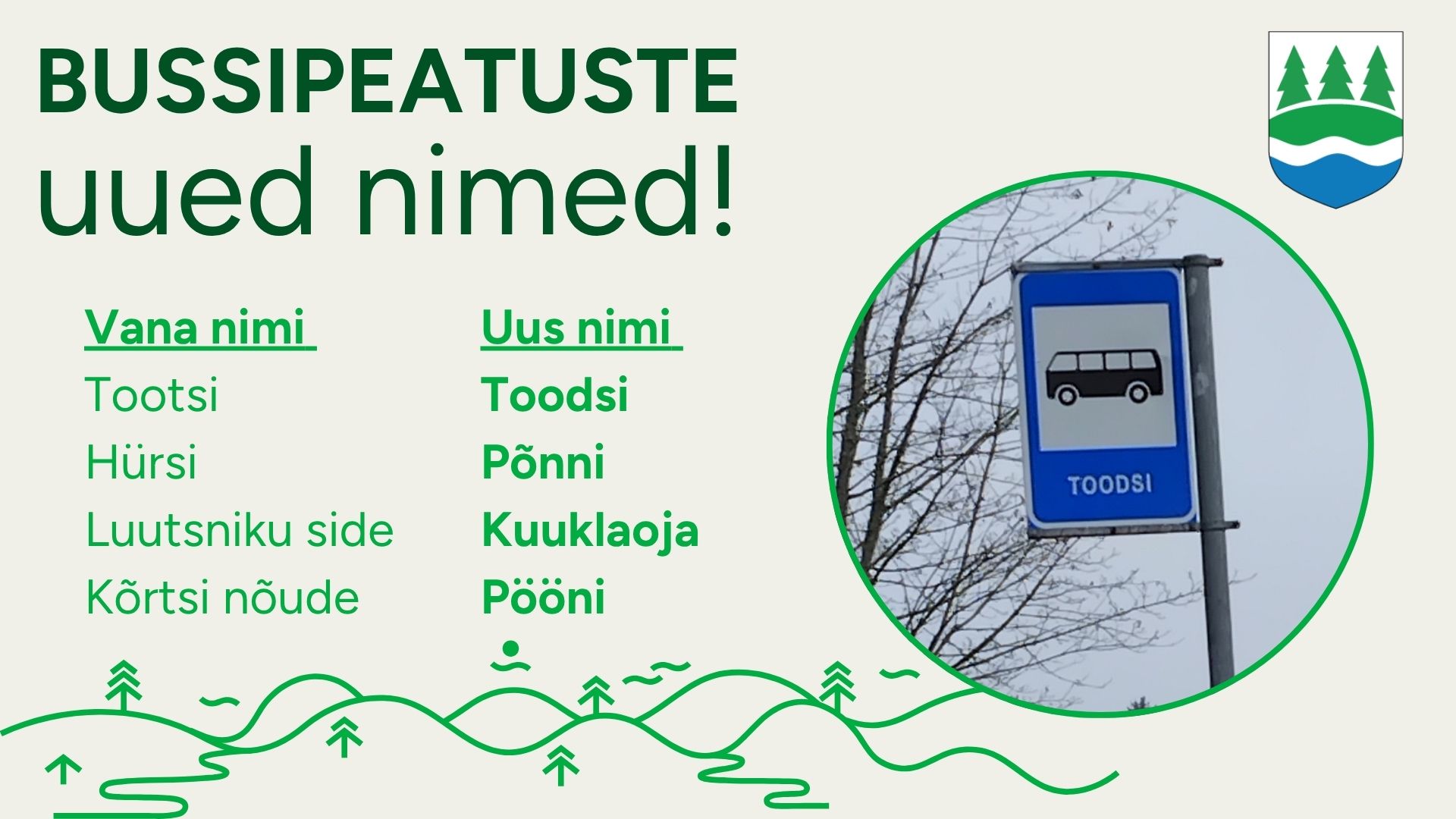Rõuge Vallavalitsus annab teada, et nelja bussipeatuse nimed on muutunud: