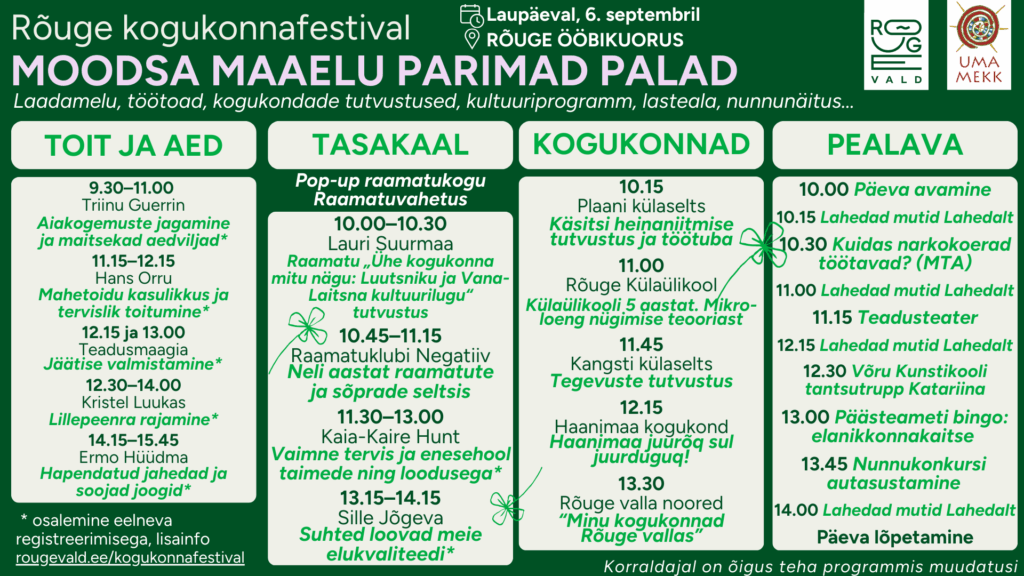 Lisainfo ja töötubadesse registreerimine: www.rougevald.ee/kogukonnafestival.